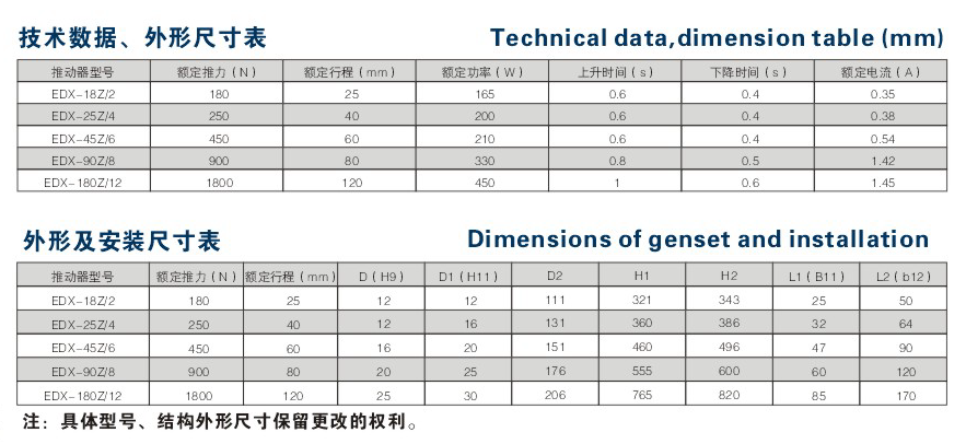 EDX系列電力電壓推動(dòng)器為我公司自主研制開(kāi)發(fā)的專利產(chǎn)品,是MYT1、YT1、ED系列的更新?lián)Q代產(chǎn)品,他克服了MYT1、YT1系列產(chǎn)品的漏油,動(dòng)作不靈活、電機(jī)易燒壞,防護(hù)等級(jí)低、維修率高等諸多存在的問(wèn)題,大大提高了產(chǎn)品的可靠性和使用壽命。已經(jīng)獲得國(guó)家專利和科技進(jìn)步獎(jiǎng)。它適用于額定電壓380V,額定頻率50HZ的三相交流電源,是目前國(guó)內(nèi)理想的制動(dòng)器驅(qū)動(dòng)裝置,并可通過(guò)杠桿機(jī)構(gòu)完成往復(fù)、圓周、擺動(dòng)等形式的快速短行程運(yùn)動(dòng),符合JB-/T10603-2006標(biāo)準(zhǔn)。